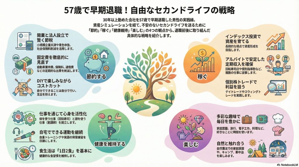 1965年生まれ、男性。30年以上勤めた会社を57歳で早期退職しました。2人の子供は社会人で、現在は妻と2人暮らしです。