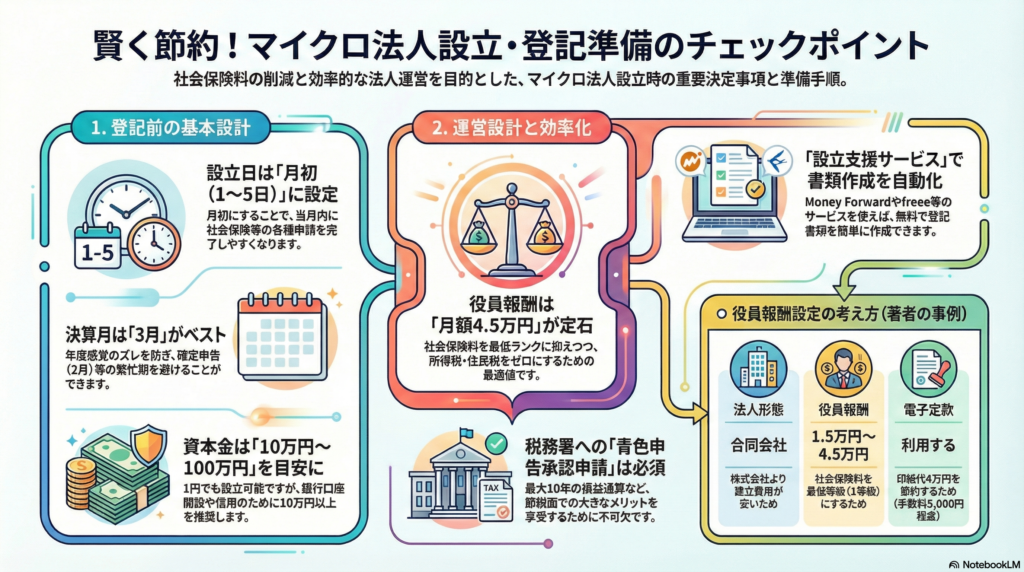 「Money Forward会社設立」は神サービスです(freeeなども同様のサービスあり)。ほとんどの申請書類を作ってくれて、無料ですから、これを使わない手はありません。