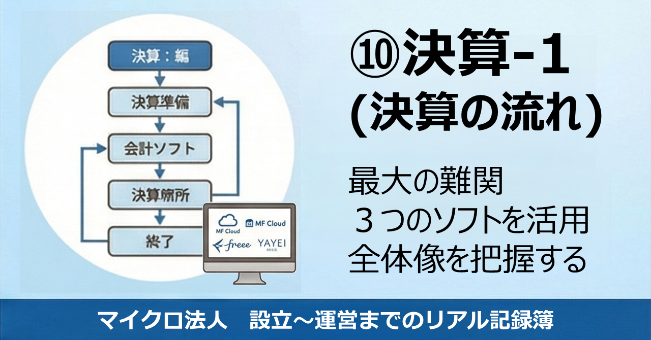 今まで9回に渡って、マイクロ法人の設立から運営のリアルをご紹介してきましたが、残るは「決算」のみです。これが最大の難関です。ここができるようになったら、マイクロ法人を運営していくのに問題はないと思います。