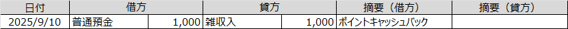 法人で物品を購入した時に、ポイントが付くことがあります。これらは、ポイントが付いた時に仕訳をするのではなく、ポイントを使った時に割引として使い、仕訳には記入しません(実際に支払った金額で仕訳する)。ただし、キャッシュバックでポイントを現金化した時は、雑収入として仕訳します。これらは、期末に処理する必要はなく、漏れがないかを確認します。
