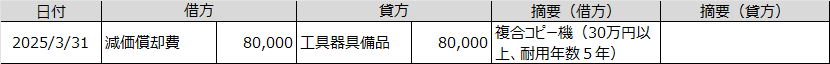 30万円以上のパソコンや備品などを購入し、資産計上している場合に必要です。30万円未満の備品は、少額減価償却資産の特例を使ってその年の経費にしますので、この仕訳をすることはあまりないです。なお、この特例の上限額は年間300万円までです。
